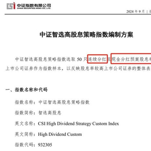 这个我提到的近期开始剔除部分银行股的红利指数是中证智选高股息策略指数(932305)。