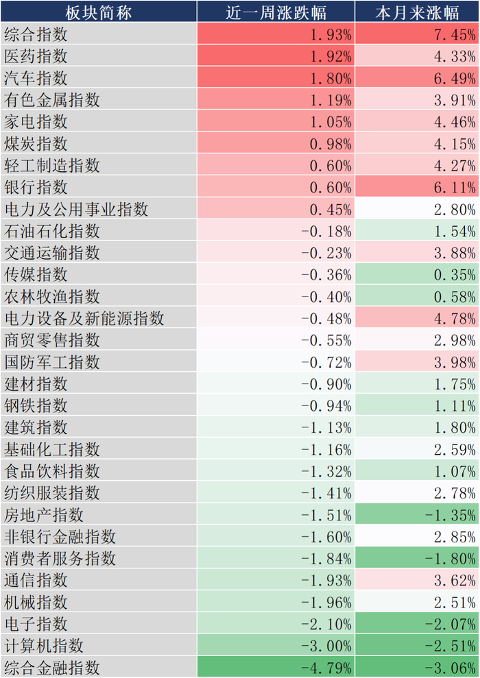 近一周市场回顾