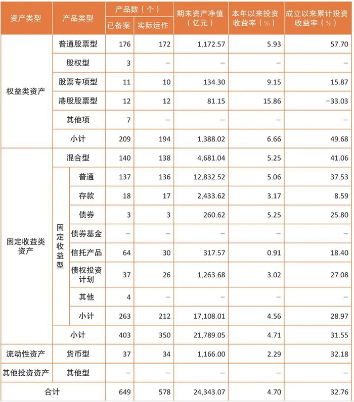 具体来说,普通股票型产品2024年收益率5.93%;股票专项型挣了9.15%;港股股票型挣了15.86%。