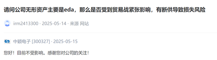 公司无形资产主要是EDA,那么是否受到贸易战紧张影响,有断供导致损失风险?