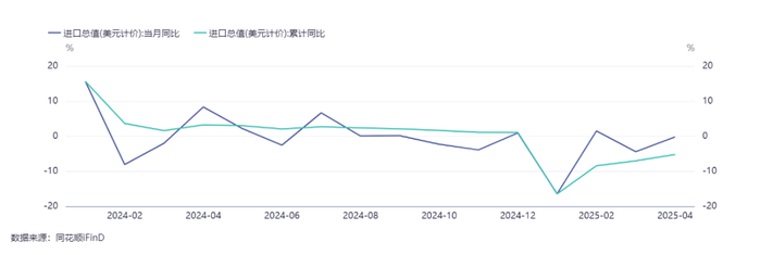 4月进口同比-0.2%,明显强于预期和前值,降幅显著收窄,与芯片进口数量明显增加有关。从商品品类看,电子、铜矿进口较强,农产品、能源类商品进口偏弱。