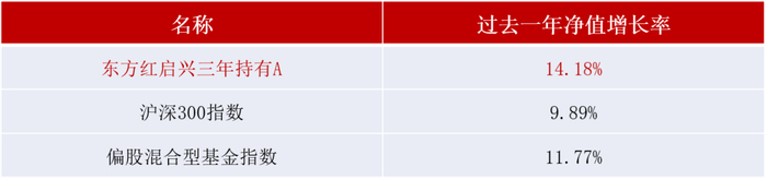 此外,根据基金一季报、Wind数据显示,截至2025年3月31日,东方红启兴三年持有混合A过去一年净值增长率为14.18%,业绩比较基准收益率为15.14%,过去一年净值增长率超过沪深300指数(000300)9.89%的涨幅,超越偏股混合型基金指数(930950)11.77%的涨幅。