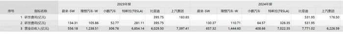 国内公司理想汽车是比较优秀的代表,近些年理想汽车研发费用占比在逐年降低,但是研发费用和营业收入的绝对值在逐年增长,这说明理想汽车的研发非常高效,研发出的产品有足够竞争力。