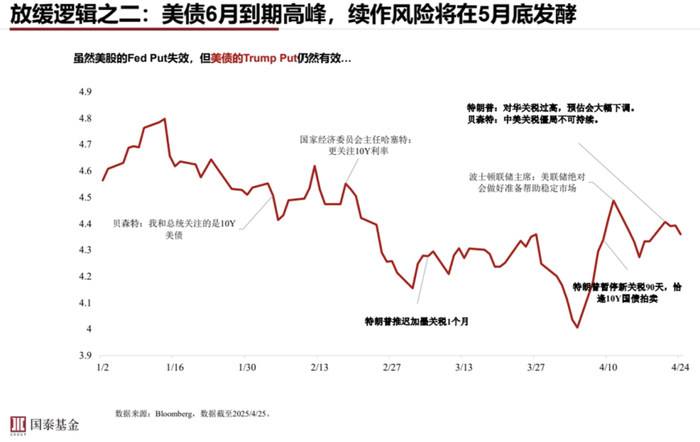 第二个是美债6月有一个到期的高峰,5月底就已经有续作风险了。大家也知道,中国政府是持有相当多的美国政府债券的,如果在关税问题上我们没有得到妥善的解决方案,那可能中国政府继续持有美国国债的意愿就会有所下降,也会给美国国债市场形成非常大的压力。这些是中美政府在博弈过程中可能会遇到的一些非常客观或者说现实的情况,也会对特朗普政府形成一些软约束。
