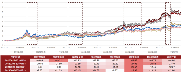 数据来源:Wind,回调阶段是指富时现金流、国证现金流、中证现金流、800/300/500/1000现金流指数及中证红利指数均下跌的阶段。注:我国证券市场成立时间较短,过往历史数据不代表市场运行的所有阶段,过往历史数据并不构成基金业绩的保证。