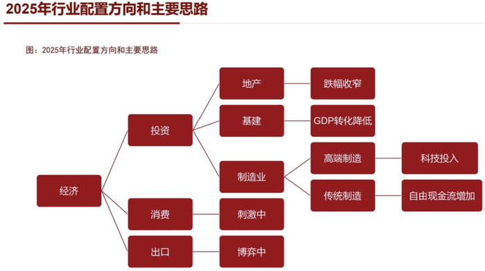 基于关税谈判的结果以及对未来的展望,我们认为配置上有三条要点:一是在消费领域里,政府可能会去发力支持。可以去关注养老、生育,并且要更重视社会福利的提高。二是在投资领域里边,随企业部门资本支出的意愿下降,自由现金流的提升可能是未来一段时间的主线。三是从企业部门的投资来看,增长可能主要来自于高端制造的投入,可能会有人工智能主线带来的大发展。