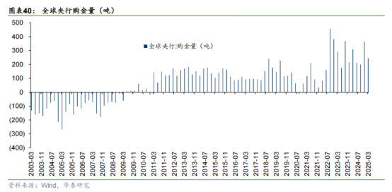 且当前我国央行等外汇储备中黄金占比和全球平均水平相比依然偏低,意味着央行购金仍有空间。根据世界黄金协会数据,截至2025年一季度末,我国央行外汇储备中黄金占比为6.5%,虽然自2022年四季度以来出现显著提升,但和全球平均18.6%的占比数据相比,依然偏低。此外,近几年购金规模靠前的印度同样仅为3.6%,新加坡仅为5.4%,同样偏低。