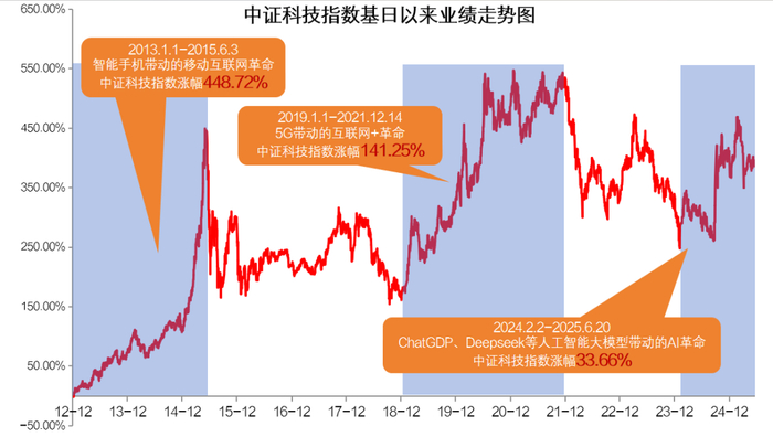 数据来源:Wind,统计区间:2012.12.31-2025.6.20。指数过往收益不预示未来表现,不构成指数基金收益的承诺或保证。市场有风险,投资需谨慎。中证科技指数代码为931186.CSI。