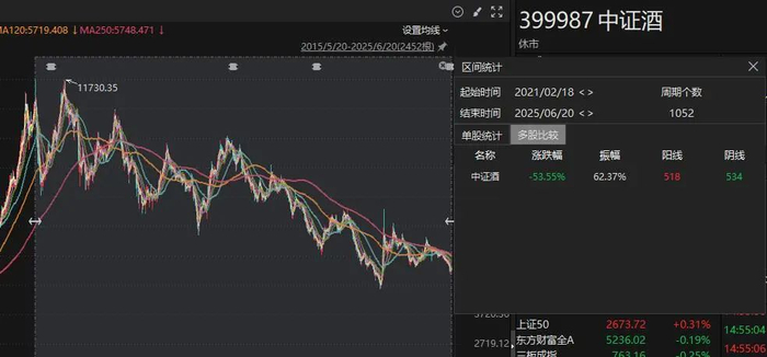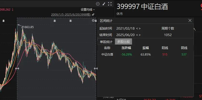 中证白酒从2021年2月18日高点以来,4年多的时间跌幅达到了56.29%!