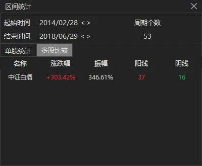 2014年2月到2018年6月,中证白酒指数迎来了一波长达4年多的慢牛行情,阶段涨幅超过了300%!