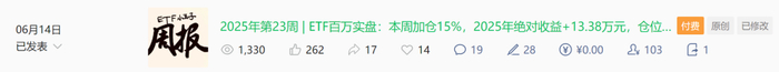 2025年第24周 | ETF百万实盘:2025年绝对收益+13.94万元,仓位95.8%(比上周减少4%)