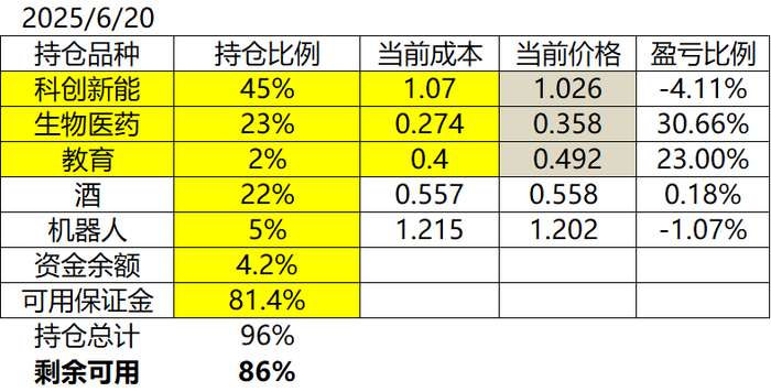 剩余可用仓位:86% (表示我还有大量的资金可以补仓)