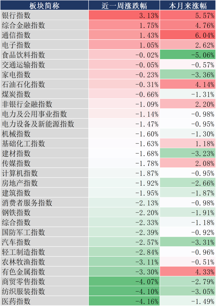 中信行业板块方面:银行、综合金融、通信指数涨幅居前;医药、纺织服装、商贸零售指数跌幅居前。