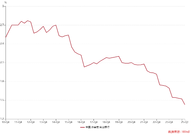 从分析框架上说,银行板块的交易逻辑在近年来发生了深刻变化。对比银行指数与十年国债活跃券利率,我们发现两者从强正相关走向了强负相关。在2023年之前,银行板块是以宏观基本面驱动为主的板块,因为宏观基本面上行往往带来信用扩张,从而利好银行板块的利润规模,而十年国债利率也具备类似的逻辑,因此两者呈现正相关。在2023年之后,在央行宽货币导向下,十年国债利率不断下行,银行业的净息差也受到了严重的压缩,这是因为存款相对于贷款,市场化程度更低,在央行调降LPR进而影响到贷款利率时,银行的存款利率却无法及时地调整。因此,2023年后银行的基本面或许该称为“恶化”,但银行指数为何走出了截然相反的表现?