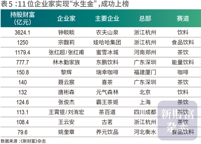 此前,消费传统的创富品种是白酒、矿泉水。千岛湖的顶级水质就孕育了农夫山泉的钟睒睒、娃哈哈的宗馥莉两大千亿级巨富。