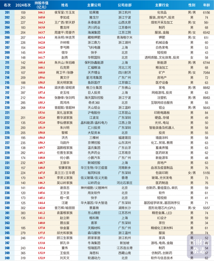 常年稳居前十的何享健和曾毓群,则先后推动旗下公司挂牌H股,美的集团、宁德时代也分别创造了2024、2025年港股最大IPO。
