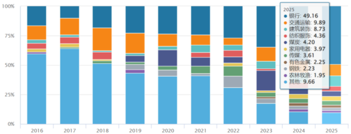 数据来源:Wind,2025年截至25/6/23,其他年度截至年末,申万一级行业分类,细分行业占比会随着指数成份股调整和成份股涨跌发生变化。
