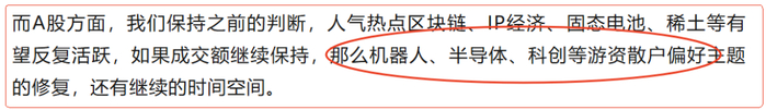 炒人气的主题,来了人气自动涨,但反之没有人气自动跌。尤其是机器人、科技和概念小票,大多数业绩不行,不靠资金接力是打不开空间的。