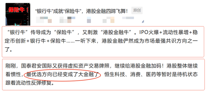 在周二收盘后,我们观察到“银行牛”又衍生出“保险牛”,并且直接提出“港股金融牛”(具体见《》)!