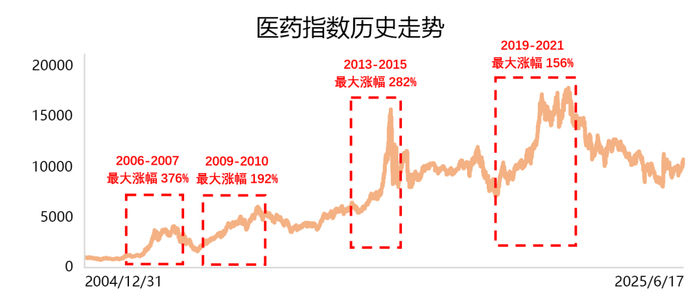 今天我们直白点,直接给大家复盘2004年至今的历次医药牛市,总结规律和共性,以史为鉴,看看当下这轮如火如荼的创新药行情空间有多大。