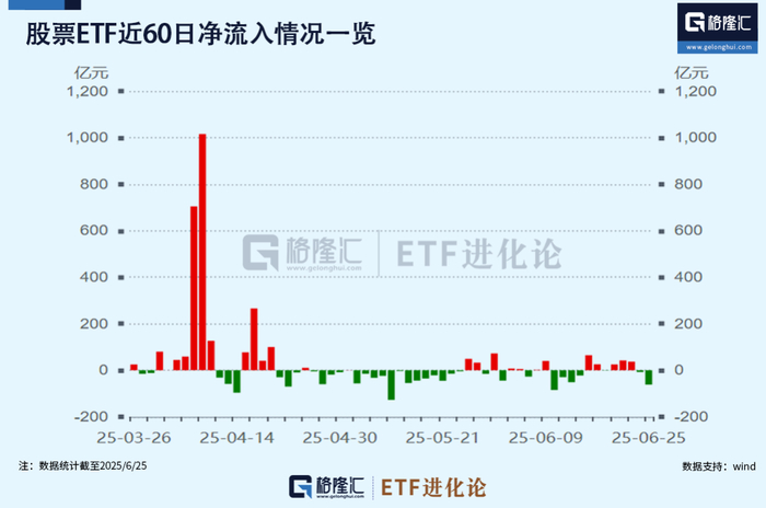 昨日的ETF资金选择获利了结,wind数据显示,6月25日,股票ETF净流出61.47亿元。