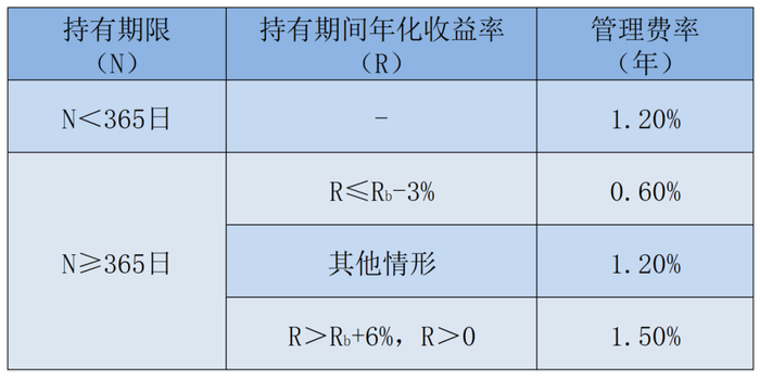 一句话来说,在满足一定持有期的背景下,业绩做得好管理费多收,业绩若不达标则少收。