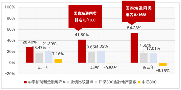 近四个完整年度表现来看,无论市场是震荡下行还是曲折上涨,华泰柏瑞新金融地产A年度回报均明显超越同期业绩比较基准(沪深300金融地产行业指数收益率*80%+上证国债指数收益率*20%),彰显基金经理杨景涵出色的捕捉阿尔法能力。