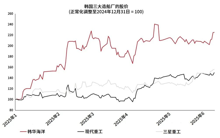 在韩国,我们也看到了与亚洲造船业,尤其是与韩国造船企业有关的更广泛的投资机会。我们正密切关注未来的美韩关系,因美韩两国考虑在造船领域建立合作关系,韩国在商用船舶和特种船舶方面均具备强劲的业绩表现纪录,其在新船订单市场份额方面仅次于中国。由于美国预计将在未来10年增加船舶订单,这种合作关系将推动韩国国内造船业的发展,并已开始在股价中体现。