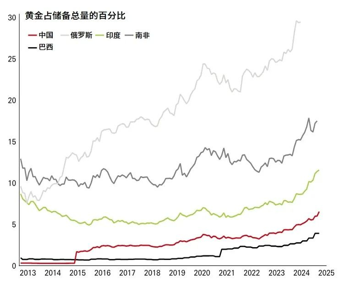 资料来源:Macrobond、国际货币基金组织《国际金融统计》 、汇丰投资管理,2025年第一季度。俄罗斯数据截至2024年第二季度。