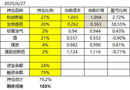 剩余可用仓位:103% (仅表示我还有大量的资金可以补仓)
