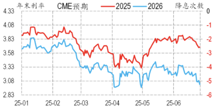 2025年以来,美元指数加速下行,创下近三年新低,美元贬值提升非美货币购买力,增强全球对铜、铝、贵金属等资源品的需求弹性;近期降息预期升温,增强大宗商品的金融属性和配置吸引力。