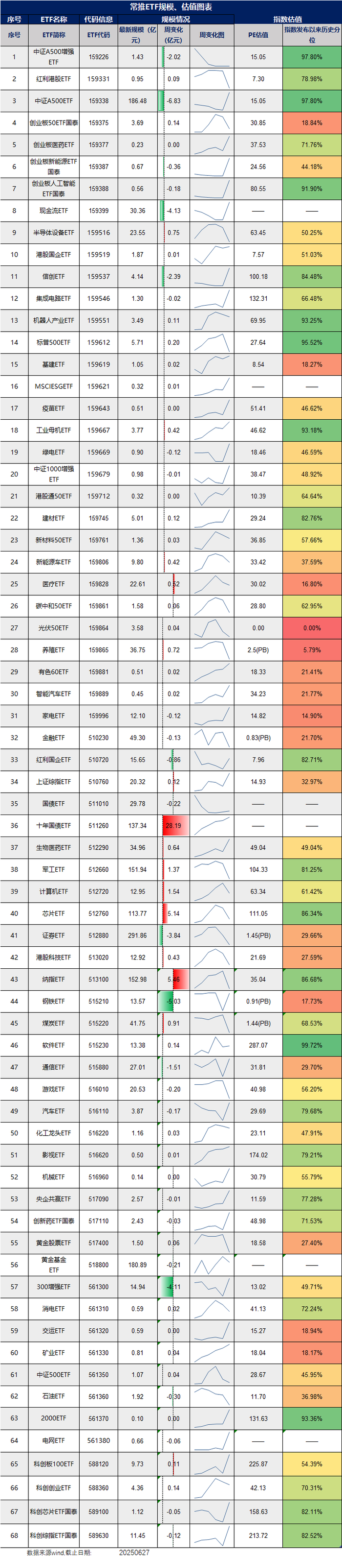 1、本周地缘冲突边际缓和,市场风险偏好提升,降息预期升温,年内降息次数预期升至三次。国内5月工业企业利润同比下降1.1%,为近半年首次环比回落。后续若经济数据走弱,或推动政策逐步托底。当前市场情绪回暖背景下,建议权益与固收资产均衡配置,可关注中证A500ETF(159338)、上证综指ETF(510760)及十年国债ETF(511260)等。