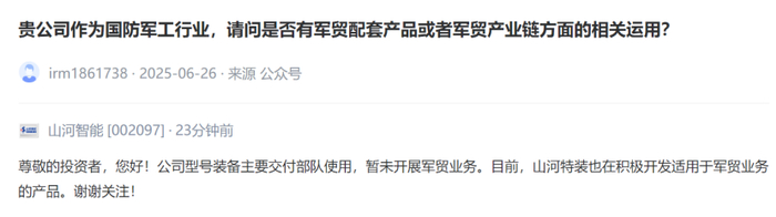近期投资者对军工、军贸、军品登相关话题的询问逐渐增多。全景为您精选来自上市公司最真实的声音。(以下内容均摘自深交所互动易、上证e互动、上市公司公告等)
