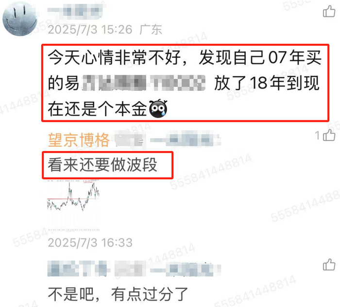 “今天心情非常不好,发现自己07年买的某基金,拿了18年到现在还是个本金!”