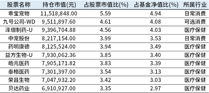 根据基金一季报可以看出,浙商大数据智选消费前十大重仓多为医药标的。
