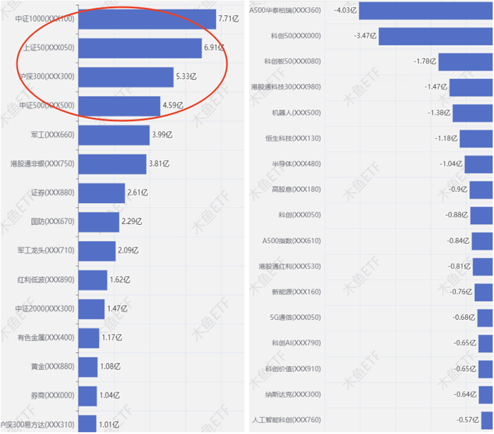 ETF申赎数据,连续多日赎回的宽基集体放量,一改逢高派发的节奏,这就是大主力主动带节奏!此外,涨的算少的军工、证券也再次被资金青睐,等着轮动。
