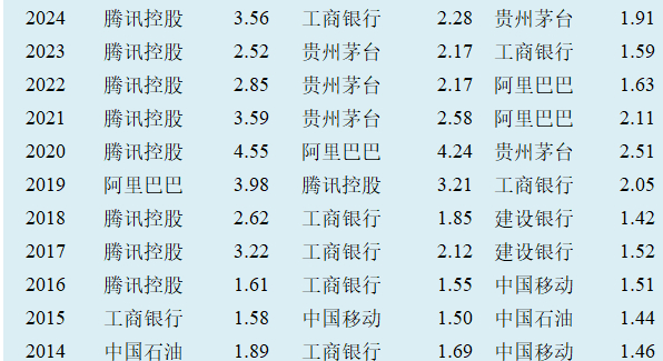 • 历史榜首最高市值:腾讯控股 5.93万亿人民币(21/2/19)