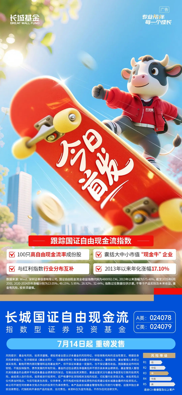7月14日起,长城国证自由现金流指数(A类:024078;C类:024079)正式发行,紧密跟踪国证自由现金流指数,一键打包多家优质“现金牛”企业,不妨重点关注。