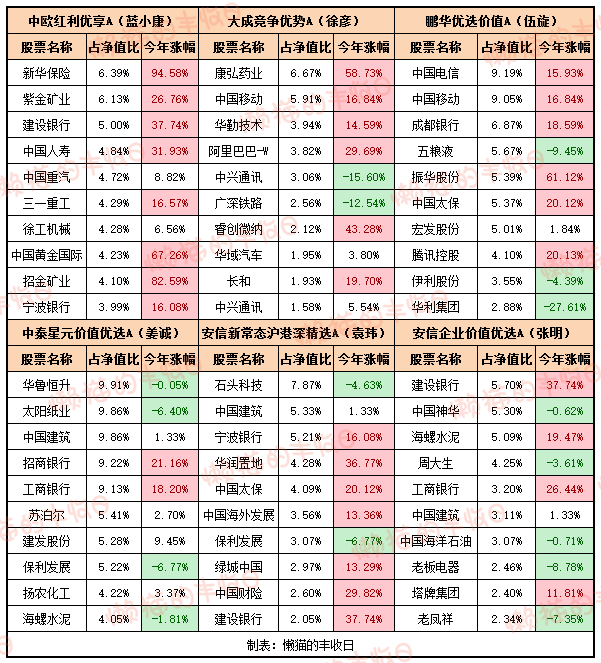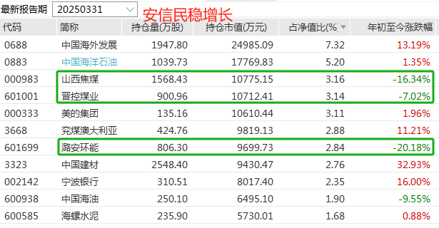张翼飞管的“安信民稳增长”,煤炭是第一大重仓行业,3只煤炭股外加中国海油今年跌了不少,但张翼飞同时持有大量银行转债,重仓的其他股票也有不少是涨的,抵消了煤炭的下跌。
