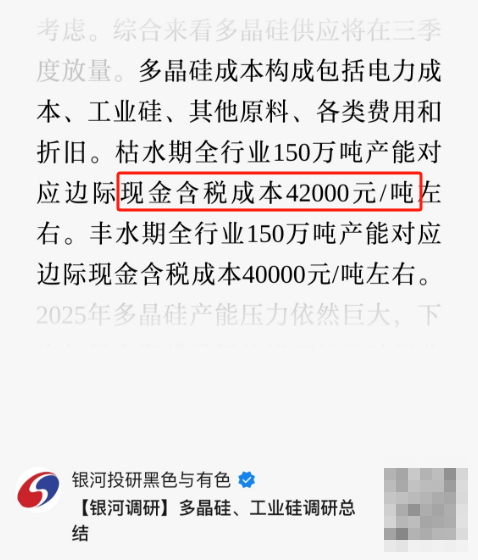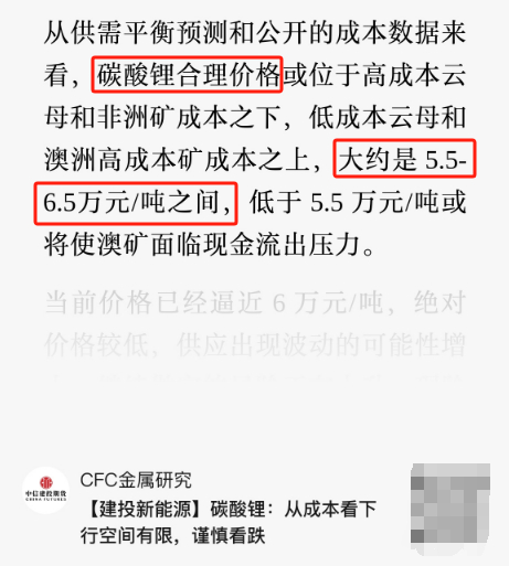 多晶硅的完全成本大概是42000元/吨,碳酸锂的合理价格大概是5.5-6.5万元/吨之间。