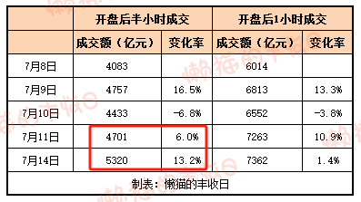 看着是缩量,但深入剖析的话,却可能是放量。开盘半小时成交5320亿元,较上周五放量13.2%。