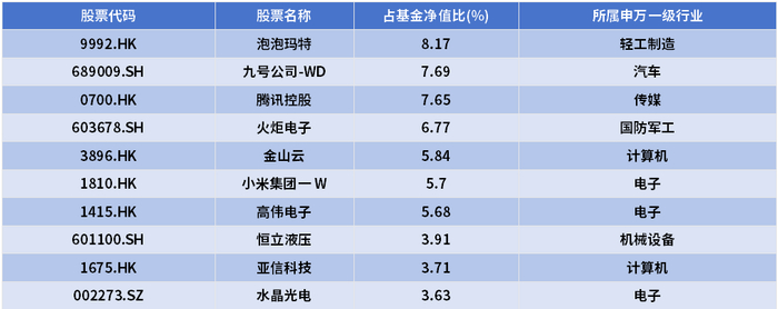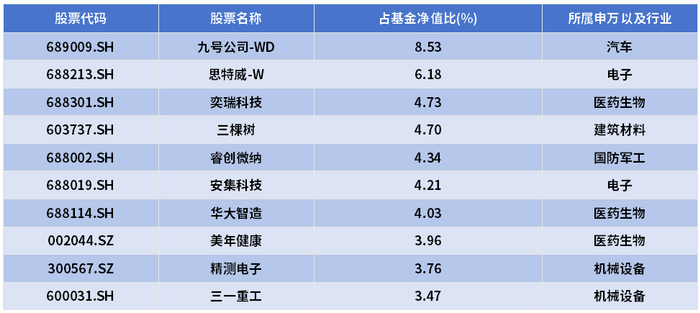 从持仓上看,公司治理的前十大重仓股聚焦科技自主可控、智能硬件等长期赛道,对长期调整后反转的医药生物行业也有所配置,同时通过分散持仓平衡风险。