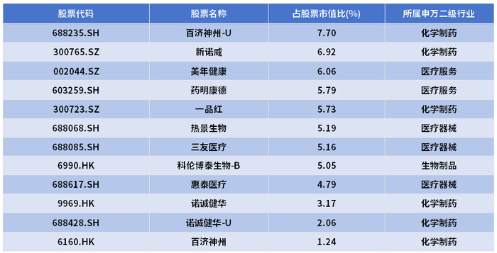 回顾医疗健康基金的历史持仓,聚焦创新药、创新器械和创新产业链的标的,较为均衡地把握科技创新在医药行业的收获期。