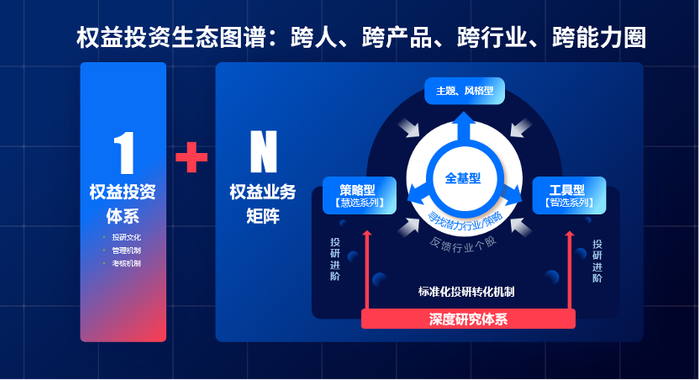 同时,叠加在尊重投资客观规律基础上的,以追求高效率的投资表达为目标,进行设计和最优人员匹配的不同形态产品构成的“N”。