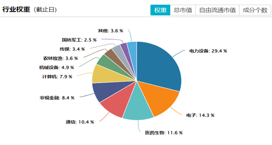 创业板聚焦于创新型企业,如信息技术、生物医药、新能源、新材料等,这些行业代表了中国经济转型发展方向,具有广阔的市场空间和增长潜力。而反映创业板市场整体表现的创业板指(399006)则由创业板中市值大、流动性好的前100只股票组成,能够全面反映创业板市场的运行情况,电力设备、电子及医药生物等新质生产力赛道 占比高,成长性突出。在打破“盈利枷锁”之后,有望涌现更多“成长性释放”的创新企业。