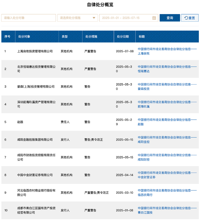 银行间市场再次对投资机构启动自律处分。