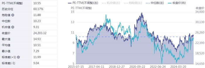 据iFinD数据,当前恒生指数PE(TTM)是10.5倍,低于上证指数(15.3倍)、标普500(27.8倍)。