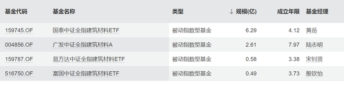 目前,基建工程指数跟踪基金共有4只,场内1只,场外3只,规模最大的为广发中证基建工程ETF。