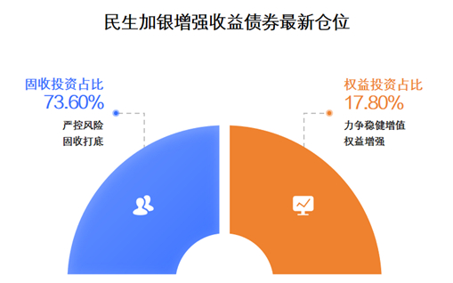 民生加银增强收益债券采用“固收增强”策略,动态调节股债配比,力争寻找风险与收益的最佳平衡。