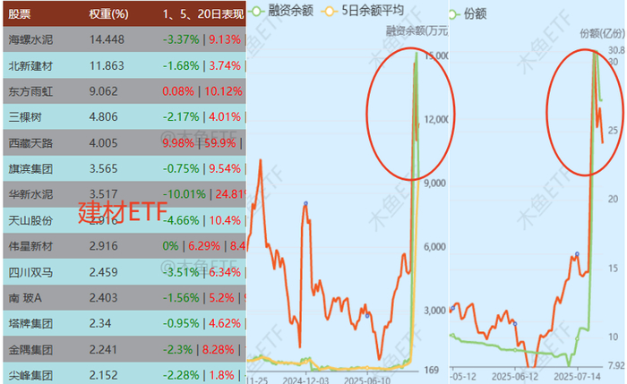 活跃性最强的建材ETF,集水电和反内卷于一体,周一周二冲进去的申购和融资盘,有部分离场,占总量大约20%。